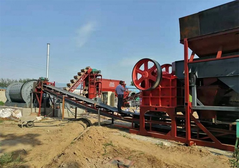 大塊石料經(jīng)料倉(cāng)由振動(dòng)給料機(jī)均勻地送進(jìn)鄂式破碎機(jī)進(jìn)行粗碎,粗碎后的石料由膠帶輸送機(jī)送到反擊式破碎機(jī)進(jìn)行進(jìn)一步破碎;細(xì)碎后的石料由膠帶輸送機(jī)送進(jìn)振動(dòng)篩進(jìn)行篩分,篩分出幾種不同規(guī)格的石子,滿足粒度要求的石子由成品膠帶輸送機(jī)送往成品料堆;不滿足粒度要求的石子由膠帶輸送機(jī)返料送到反擊式破碎機(jī)進(jìn)行再次破碎。成品粒度可按照用戶的需求進(jìn)行組合和分級(jí),為保護(hù)環(huán)境,可配備輔助的除塵設(shè)備。