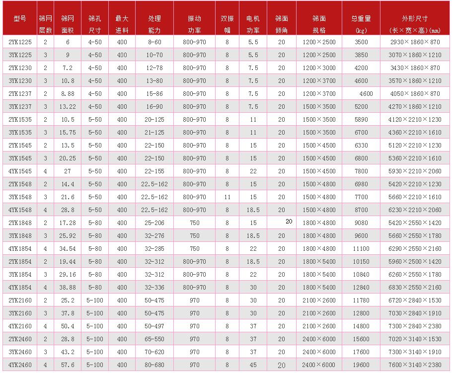采用筒體式偏心軸激振器及偏塊調節(jié)振幅,先進的鉚釘連接裝配式機架結構提高了設備使用壽命及彈簧減振裝置減小了對基礎的沖擊力,是一種多層、效率高的新型振動篩。該機型物料篩淌線長,篩分規(guī)格多,各檔規(guī)格篩選清晰,篩分效率高,不易堵塞。具有結構合理、激振力強、振動噪音小、堅固耐用、維修方便、使用安全等優(yōu)點,廣泛應用于礦山、建材、交通、能源、化工等行業(yè)的產品分級,是破碎篩分機組上的理想設備。當安裝了小孔徑篩網時,需要加水噴淋才能篩分潮濕的粘性物料。