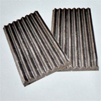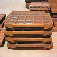 從顎式破碎機(jī)的工作原理中我們知道,在顎式破碎機(jī)工作時,動鄂和定鄂承受巨大的破碎力,容易磨損,為了保護(hù)鄂板,一般在動鄂和定鄂的表面安裝耐磨的襯板,也就是我們常說的動鄂板和定鄂板,顎式破碎機(jī)襯板的表面通常做成齒形,齒峰的角度為90°~120°,破碎大塊物料時,角度要大些;破碎小塊物料時,角度可以小些。齒距的大小取決于出料口的寬度,齒高與齒距之比可取為1/ 2~1/ 3。